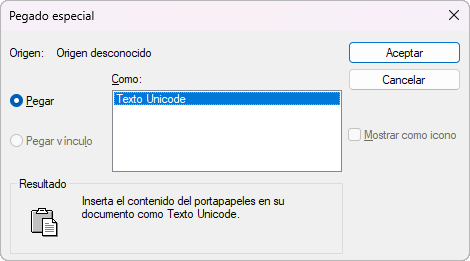 Cuadro de diálogo Pegado especial