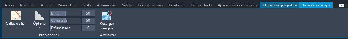 Al seleccionar una imagen de mapa, la ficha contextual Imagen de mapa aparece en la cinta de opciones.