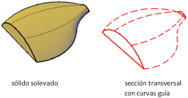 - Curvas guía. Especifique curvas guía para que se ajusten a los puntos en las secciones transversales correspondientes. Este método evita resultados no deseados, como la presencia de arrugas en el objeto 3D resultante.