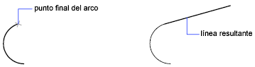 Inmediatamente después de crear una línea o un arco, se puede iniciar un arco tangente en un punto final si se inicia el comando ARCO y se pulsa Intro cuando aparezca la solicitud Precise punto inicial. Sólo hace falta especificar el punto final del nuevo arco.