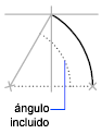 La distancia entre el punto inicial y el centro determina el radio. El otro final del arco se determina especificando un ángulo incluido que usa el centro del arco como vértice.