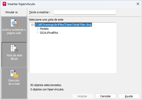 Permite especificar una vista guardada en el dibujo actual a la que asociar el hipervínculo.