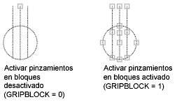 Controla la visualización de pinzamientos en bloques. (Variable de sistema GRIPBLOCK.)