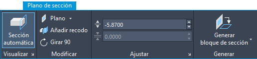 Al seleccionar una línea de sección, la ficha contextual Plano de sección aparece en la cinta de opciones.