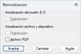 Define el puerto E/S y el archivo del dispositivo para la reinicialización.