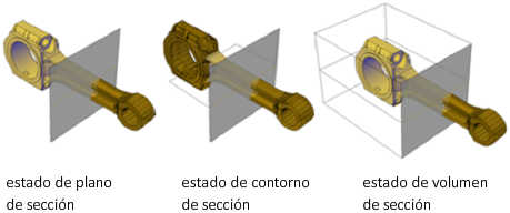 Puede alternar entre los estados de objeto. Para ello, haga clic en el pinzamiento de menú que aparece al seleccionar el objeto de sección, o bien seleccione la opción en el menú contextual.