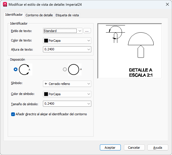 Especifica el estilo de texto que se utilizará para el identificador del contorno de detalle.