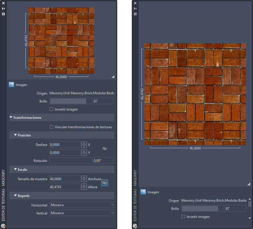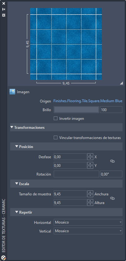 | Tipo de textura | Posición | Ajuste de escala | Repetir |