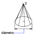 Define el diámetro base del cono mediante la especificación de dos puntos.