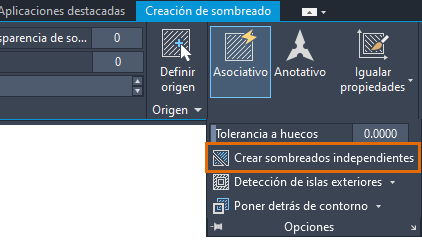 Nota: La ficha Creación de sombreado de la cinta de opciones se mostrará cuando el comando SOMBREA esté activo.