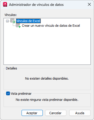 Muestra los vínculos contenidos en el dibujo. También ofrece opciones para crear nuevos vínculos de datos.