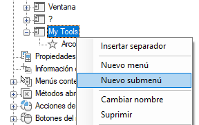 8. Continúe añadiendo comandos hasta completar el nuevo submenú.