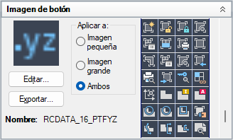 En la ficha Personalizar, en el panel Lista de comandos o Personalizaciones en <nombre de archivo>, seleccione un comando para mostrar el panel Imagen de botón.