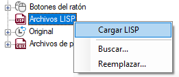 Nota: El nodo Archivos LISP solo se utiliza en AutoCAD.