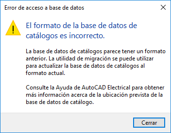 Puede personalizar la base de datos de catálogo añadiendo tablas, añadiendo registros y editando registros. Sin embargo, algunos cambios pueden detener el uso de la base de datos de catálogo del programa. Cuando eso ocurra, verá este mensaje.