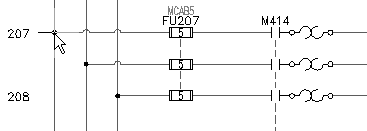 seleccione la intersección del bus vertical izquierdo con el cable superior horizontal en la referencia de línea 207