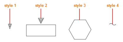 Permite especificar el estilo de flecha de señal de cable. Puede seleccionar uno de los cuatro estilos predefinidos o un estilo definido por el usuario.