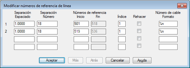 El cuadro de diálogo Modificar números de referencia de línea mostrará una lista de diagramas Ladder en el dibujo.