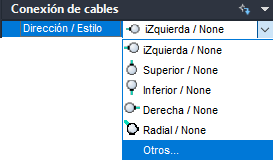 Expanda la lista Dirección / Estilo y seleccione Otros para iniciar el cuadro de diálogo Insertar conexiones de cables.