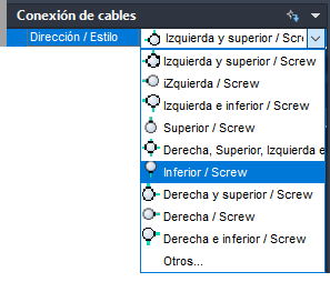 Seleccione Derecha/Screw en la lista Dirección / Estilo de Conexión de cables.