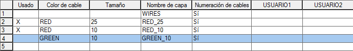 El nombre de capa se creará automáticamente. Se asignará el nombre ROJO_25 a la capa de cable que se está creando.