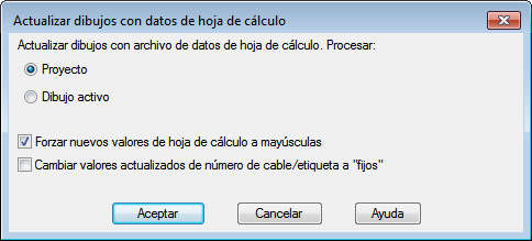 Especifique la importación de los datos de la hoja de cálculo del dibujo actual o del proyecto.