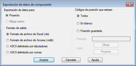 Especifique si desea exportar los datos del dibujo actual o de todo el proyecto.