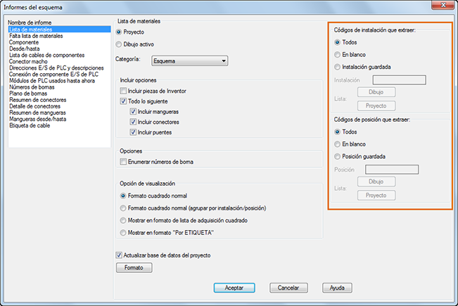 Se proporciona un conjunto estándar de informes de esquema y de armario. Los informes de esquema solo extraen la inteligencia de los componentes de esquema. Los informes de armario extraen la inteligencia de los componentes de armario, excepto para la lista de materiales del armario, que puede incluir cualquiera de los componentes del esquema a los que no se hace referencia en un diseño de armario.
