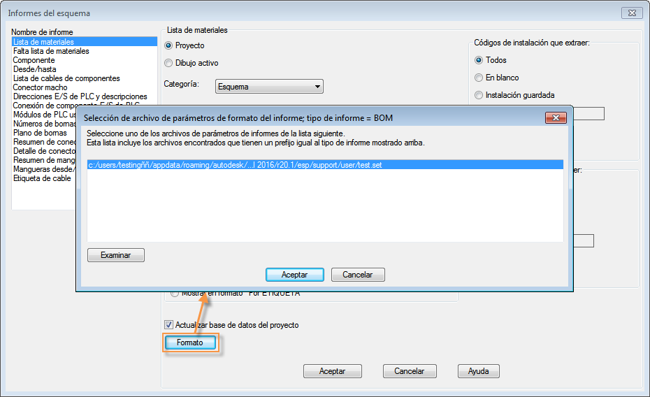 | Informe del esquema | Archivo de formato por defecto |