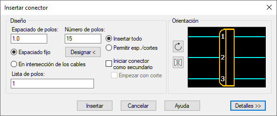 Cree conectores de forma dinámica mediante la definición de los parámetros de conectores, como el número de polos, sus espaciados y valores.