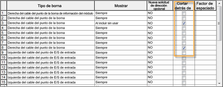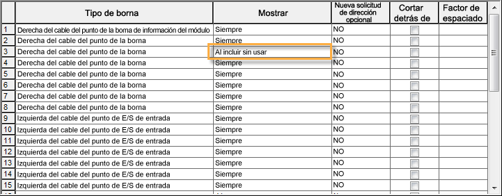 Incluye las bornas definidas en Al incluir sin usar en la base de datos de PLC para el módulo de PLC.