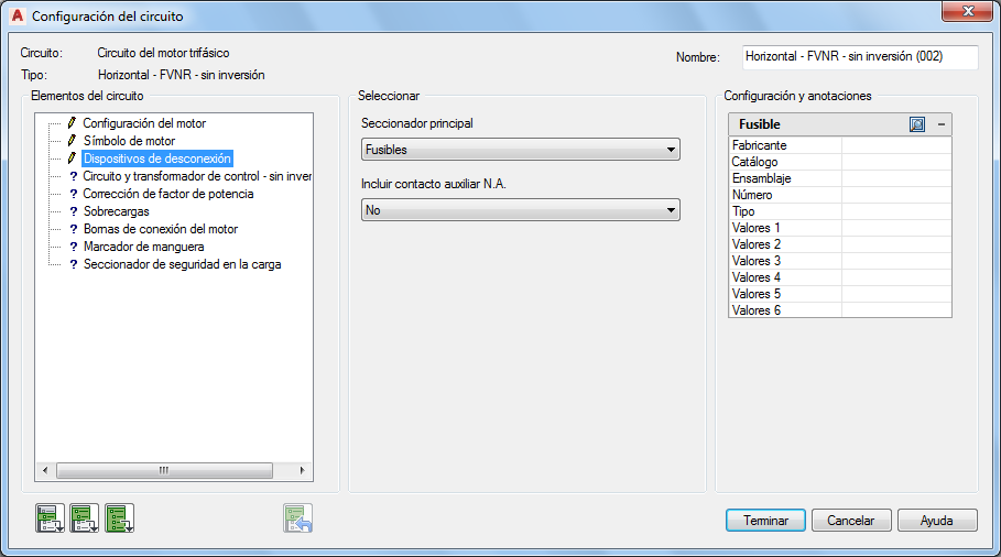 En la sección Seleccionar, elija Seccionador principal: Fusibles.