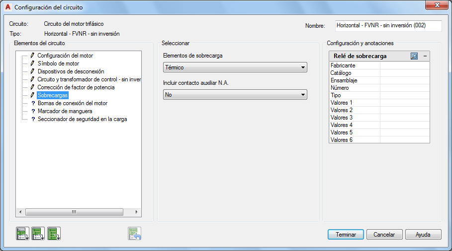 En la sección Seleccionar, elija Elementos de sobrecarga: Térmico.