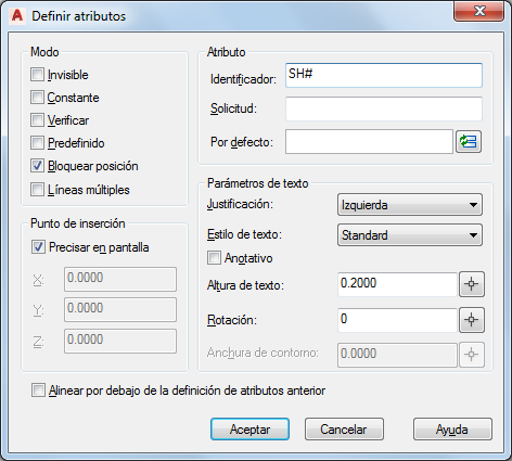 - Repita el procedimiento para cada definición de atributo del cajetín tal y como se muestra.