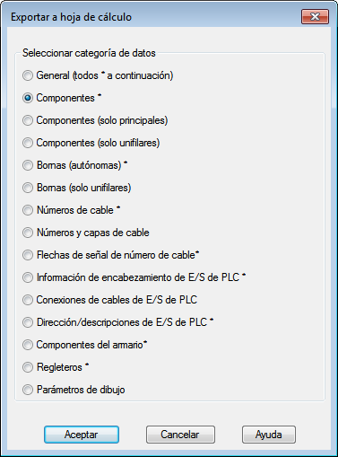 Las ediciones en la hoja de cálculo pueden actualizar valores en los componentes, las bornas, los módulos E/S de PLC y los números de cable. No puede insertar nuevos elementos en los dibujos.