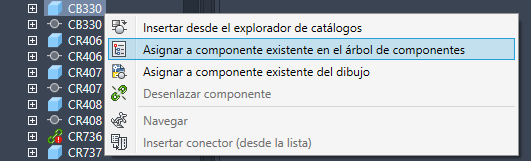 En la vista en árbol de componentes, seleccione el componente eléctrico que desea vincular a la pieza de Inventor. La vista en árbol de componentes se actualiza automáticamente para mostrar el componente vinculado.