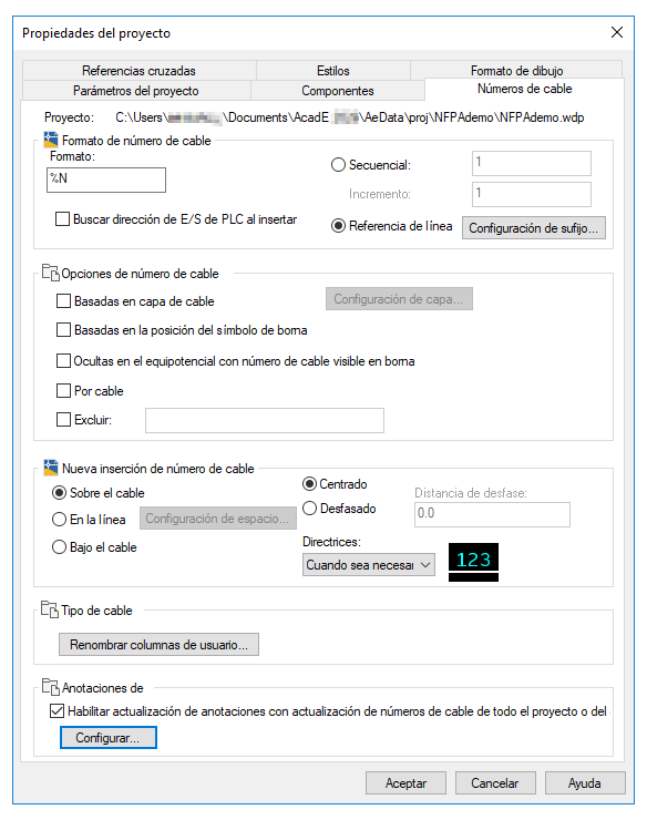 - Establecer el formato de número de cable.