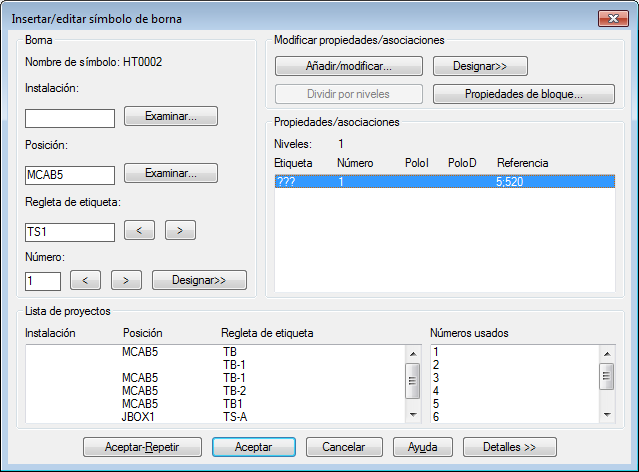 Utilice la herramienta Inserción múltiple para insertar y anotar una cadena de bornas.