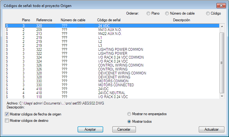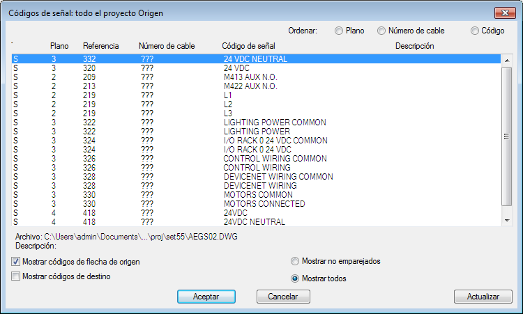 Las referencias cruzadas de la señal se insertarán en el dibujo por encima del cable activo.