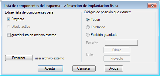 5. En el cuadro de diálogo Lista de componentes del esquema -- inserción de implantación física, verifique los elementos siguientes: