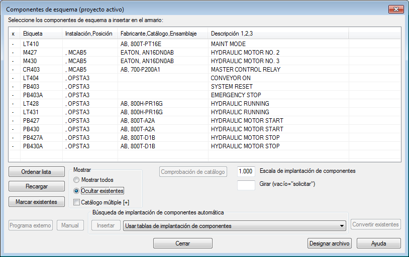 Nota: El botón Manual se utiliza cuando las implantaciones de componente del esquema no tienen definido ningún fabricante ni número de catálogo.