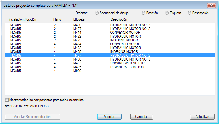 Ahora, la etiqueta M427 aparece en el cuadro de edición Etiqueta de componente. Observe que los cuadros de descripción, referencia cruzada y código de posición también se han actualizado.