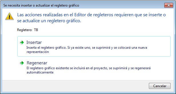 Para colocar el regletero, haga clic en Insertar en la ficha Vista preliminar de diseño. También puede hacer clic en Regenerar o Actualizar para actualizar in situ el regletero editado de objeto gráfico o de tabla.