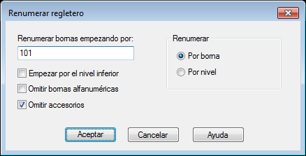 Si alguna borna de varios niveles forma parte de la selección, seleccione si desea cambiar la numeración por: