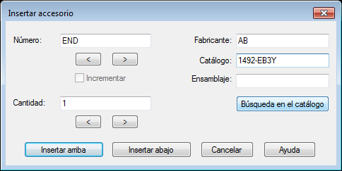 Seleccione la fila encima o debajo de la cual desea insertar el accesorio.