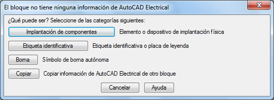 Si el bloque no contiene la inteligencia necesaria para la implantación de componentes de armario, se le solicitará que elija el tipo de implantación de componentes.