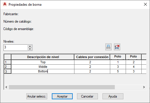 Defina una borna de varios niveles mediante la asignación de las propiedades correspondientes.