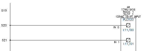 El módulo de PLC se inserta en el dibujo con números de dirección incrementales que ya están anotados a medida que entra el módulo, se parte y se vuelve a conectar a los cables subyacentes.