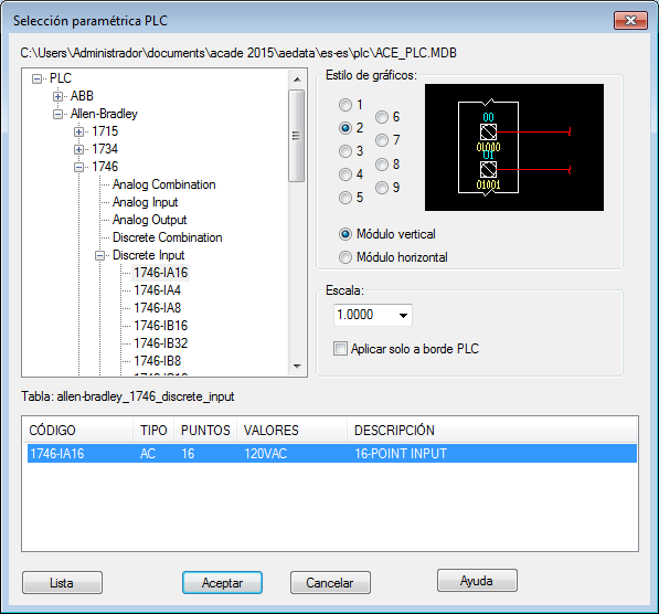 Para insertar un módulo de PLC, el usuario selecciona el módulo y designa una posición. AutoCAD Electrical toolset genera e inserta el módulo mediante un pequeño conjunto de símbolos de biblioteca.