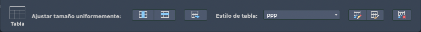 Asigne el mismo tamaño a las columnas o filas, exporte los datos de la tabla, cambie el estilo de la tabla o elimine todas las modificaciones de propiedades de estilo de tabla.
